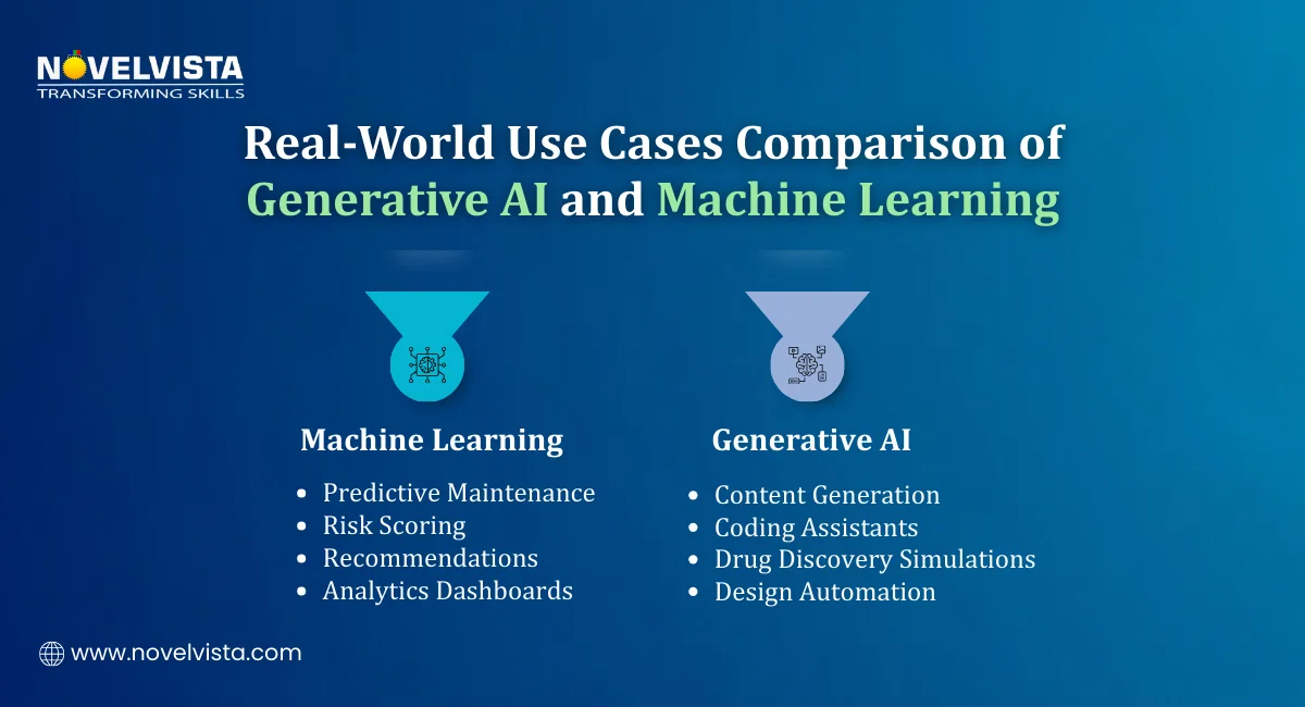 Understanding use cases makes the Generative AI vs Machine Learning distinction much easier.
