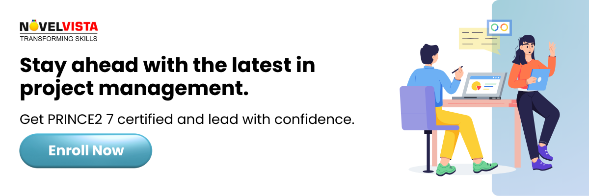 Ready to dive into the PRINCE2 7th Edition? NovelVista offers expert-led PRINCE2 Foundation and Practitioner courses designed to help you master the latest updates, prepare for the exam, and earn your certification. With real-world examples, hands-on learning, and full certification support, NovelVista ensures you’re ready to succeed in the evolving world of project management.