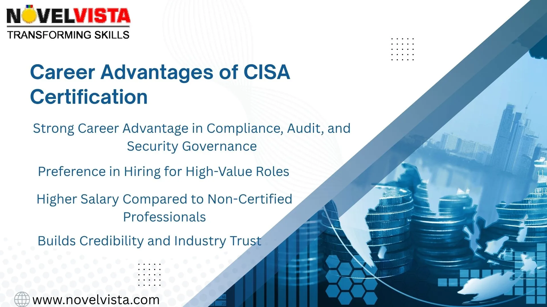 If you're ready to take your career to the next level, CISA is undoubtedly worth the investment. Whether you are a beginner, fresher, or professional, NovelVista’s CISA training is here to guide you every step of the way, ensuring you gain both the knowledge and confidence needed to succeed.